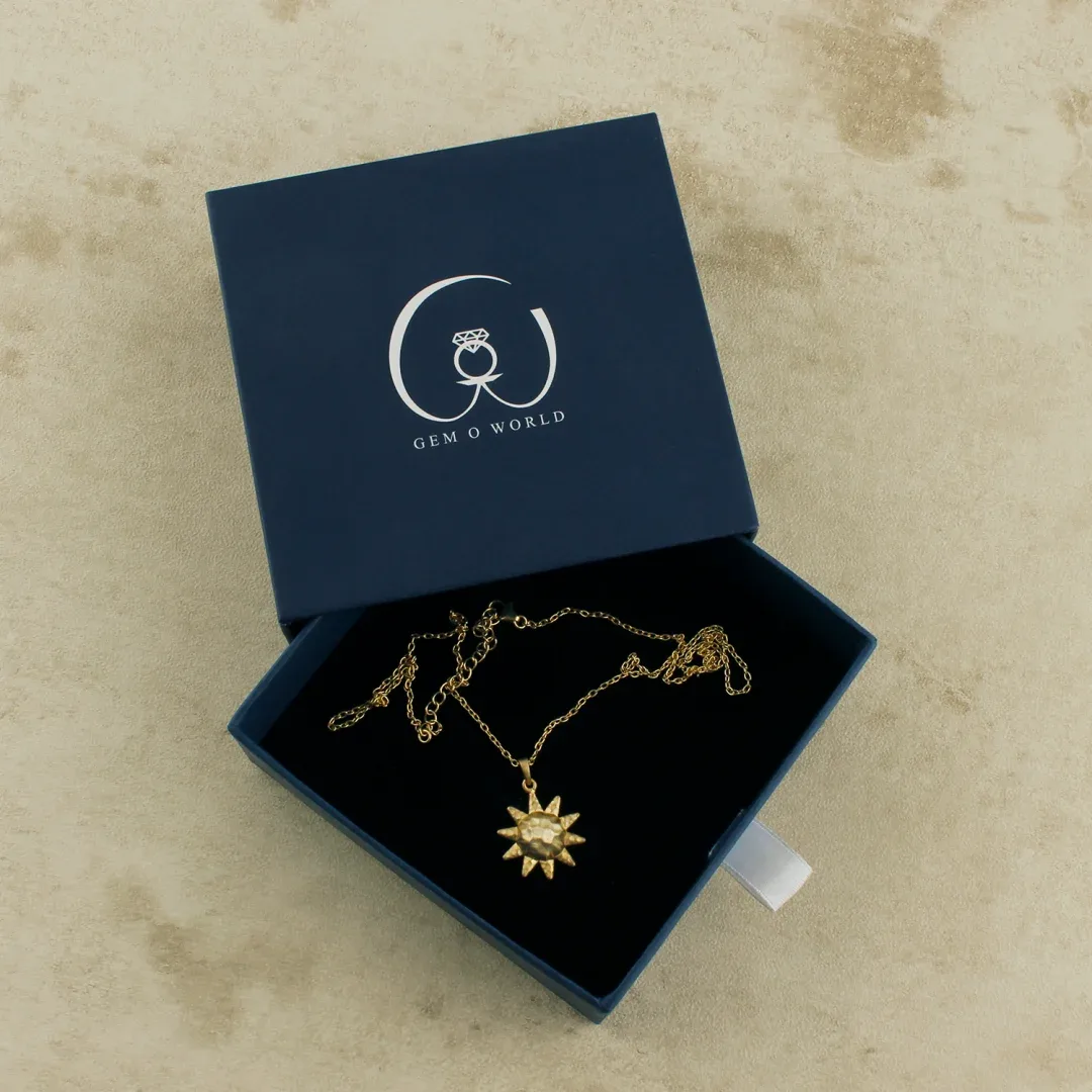 Moreover, Crafted with meticulous attention to detail, the pendant showcases the radiant beauty of the sun, symbolizing warmth, energy, and positivity.
