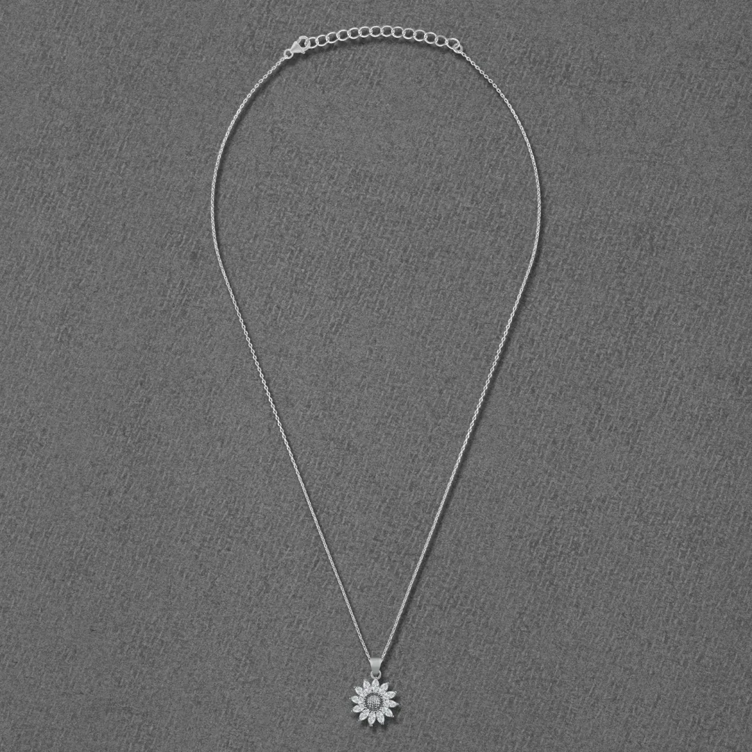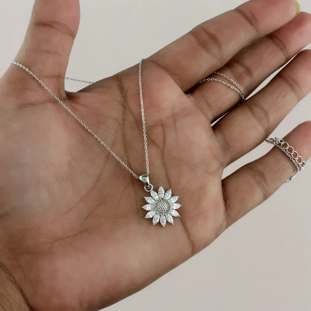Radiant Sunflower Brilliance: American Diamond Silver Necklace with Chain