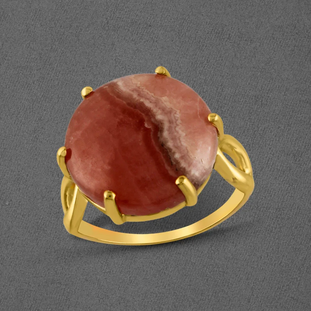 Crafted from high-quality 925 sterling silver with gold plating, this ring boasts a luxurious finish that exudes finesse and refinement. Its design is entwined with a stunning rhodochrosite gemstone, adding a touch of elegance and allure to every ensemble.