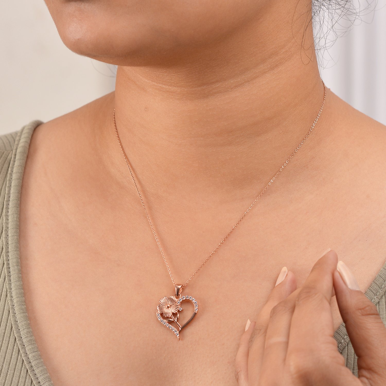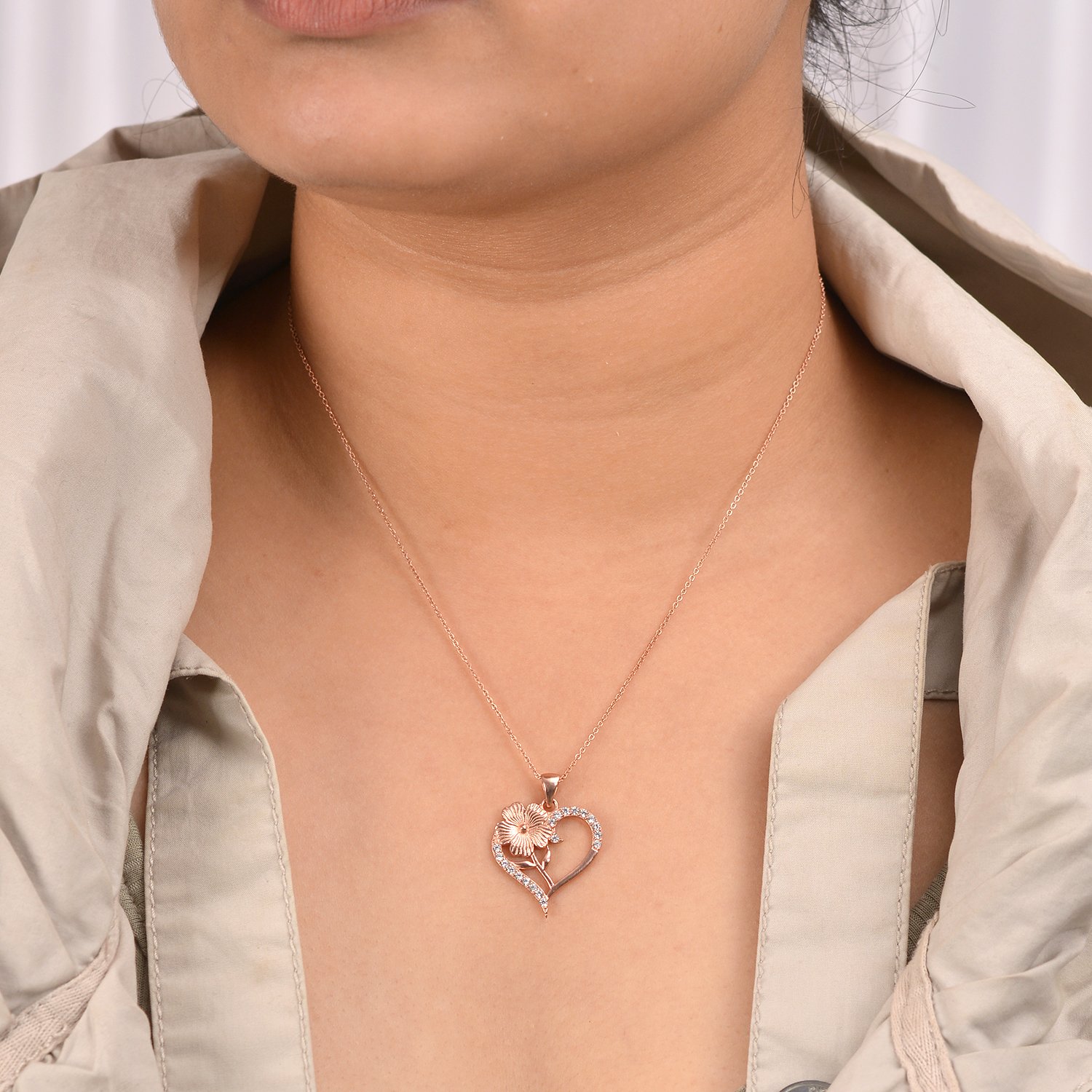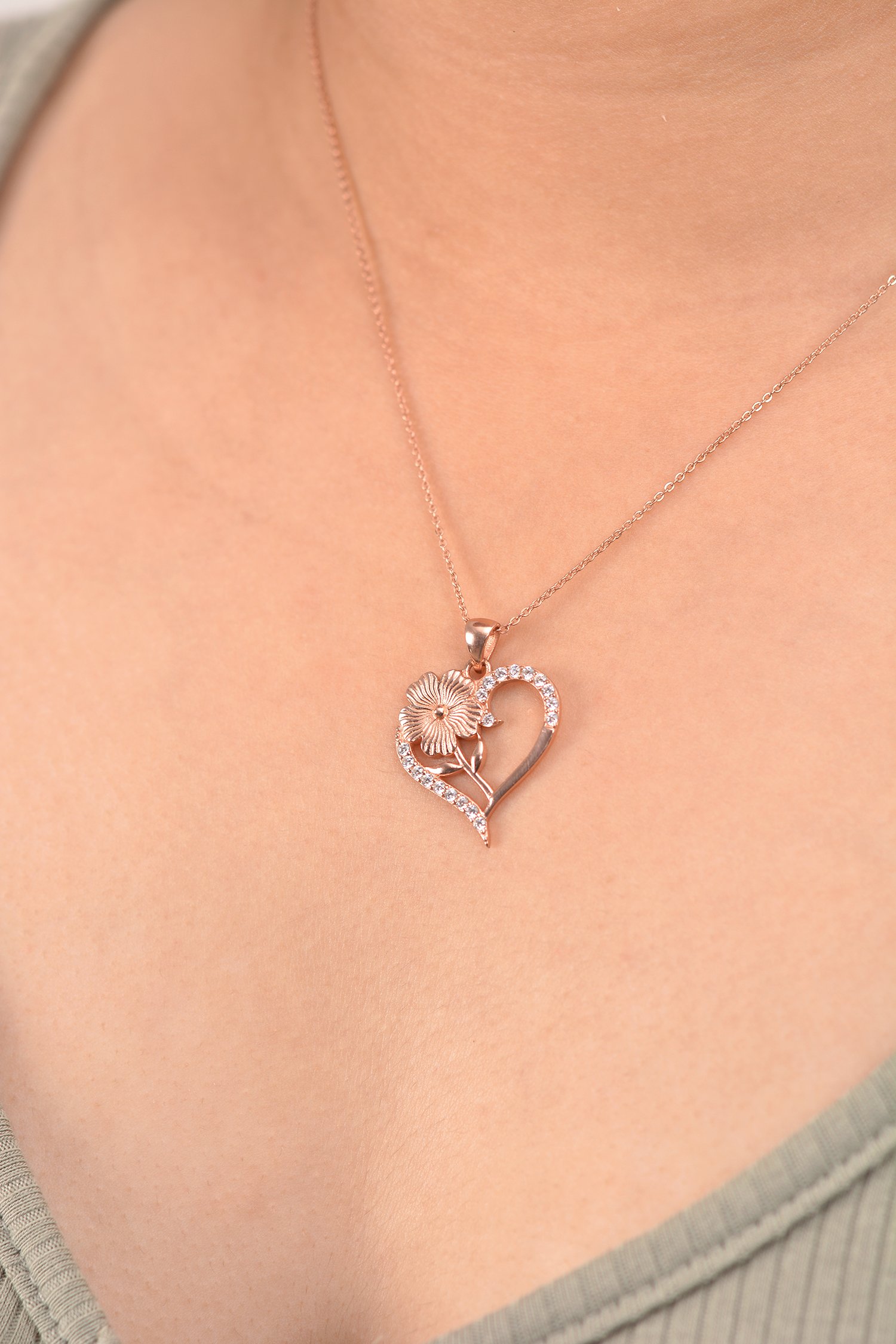 Rose Gold Heart & Floral Silver Pendant Necklace