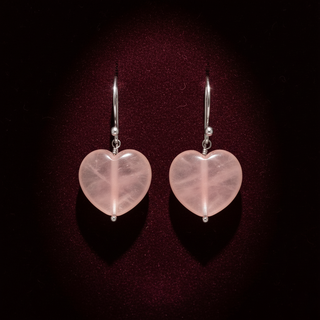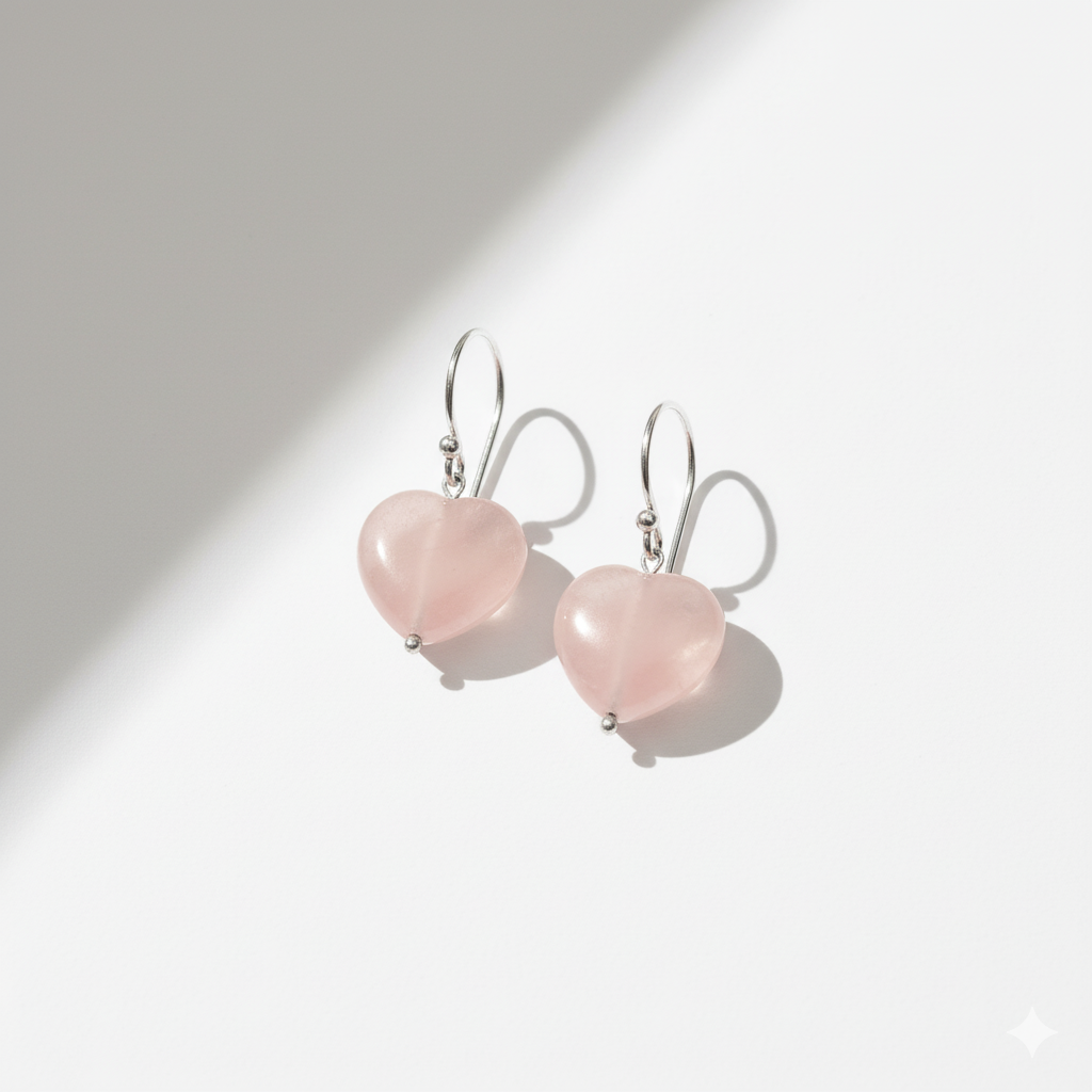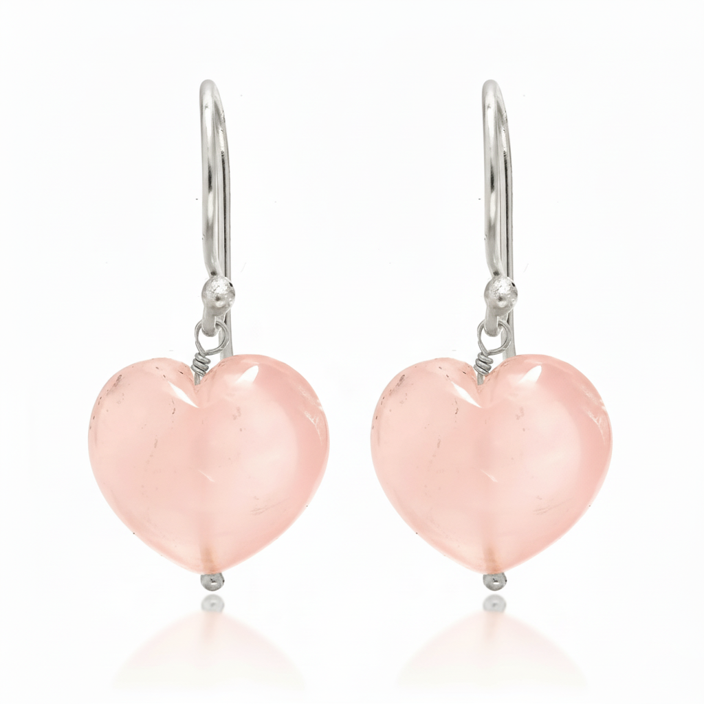 Rose Quartz Earrings 925 Silver White Rhodium Plated Taurus