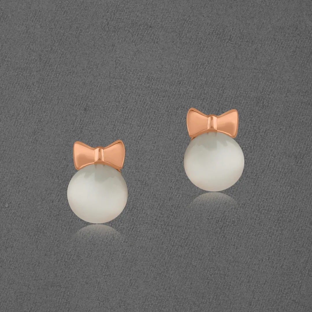 Royal Rose Gold Bow Pearl Stud Silver Earrings
