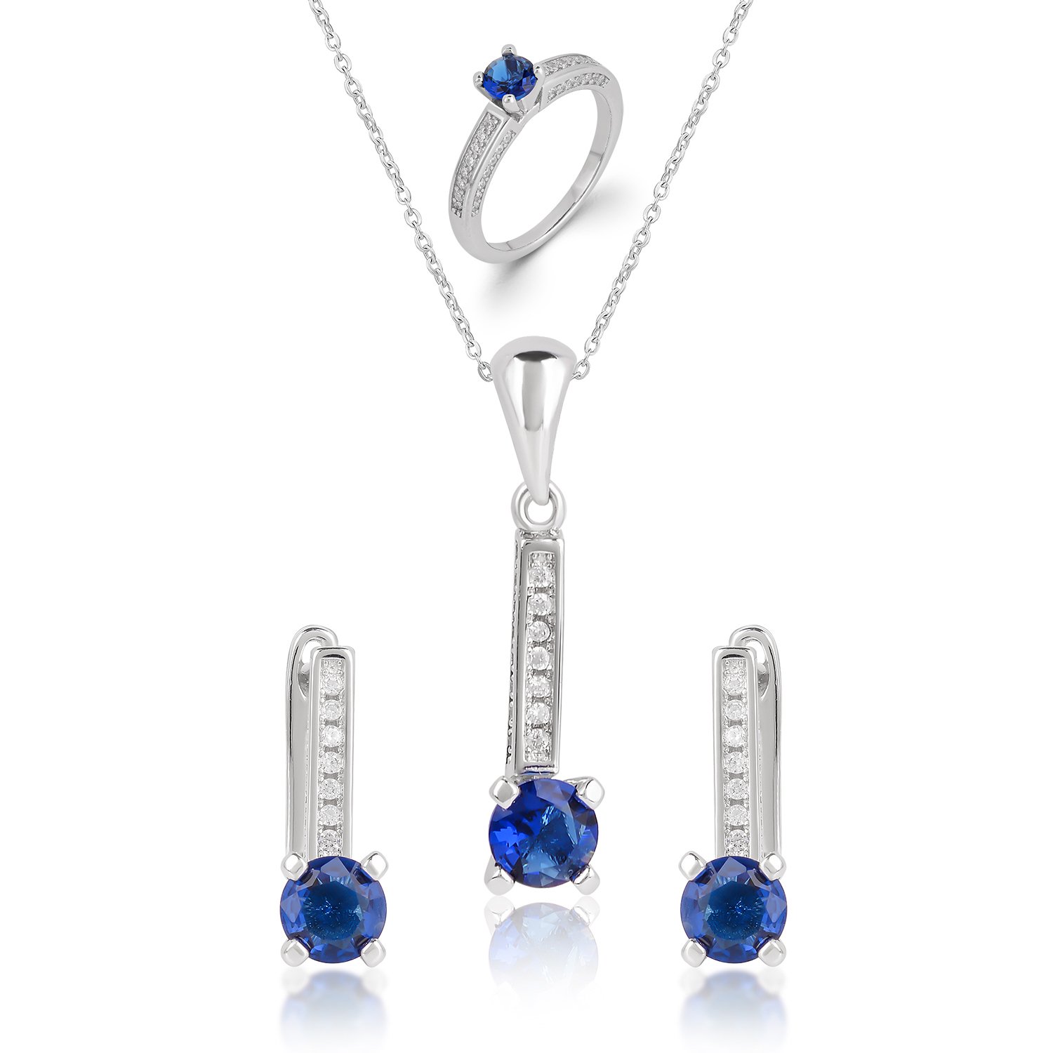 Sapphire Sterling Silver Necklace, Earrings and Ring Set For Her (Set)