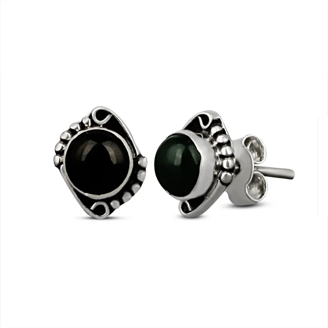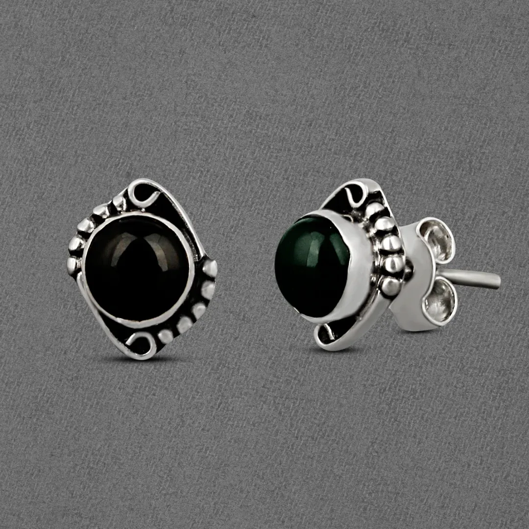 Each earring features a captivating round stone set in a High-quality silver setting.? Showcasing the perfect balance between simplicity and exquisite craftsmanship. The smooth, polished surface of the stone reflects light with breathtaking brilliance, adding a touch of glamour to any outfit.