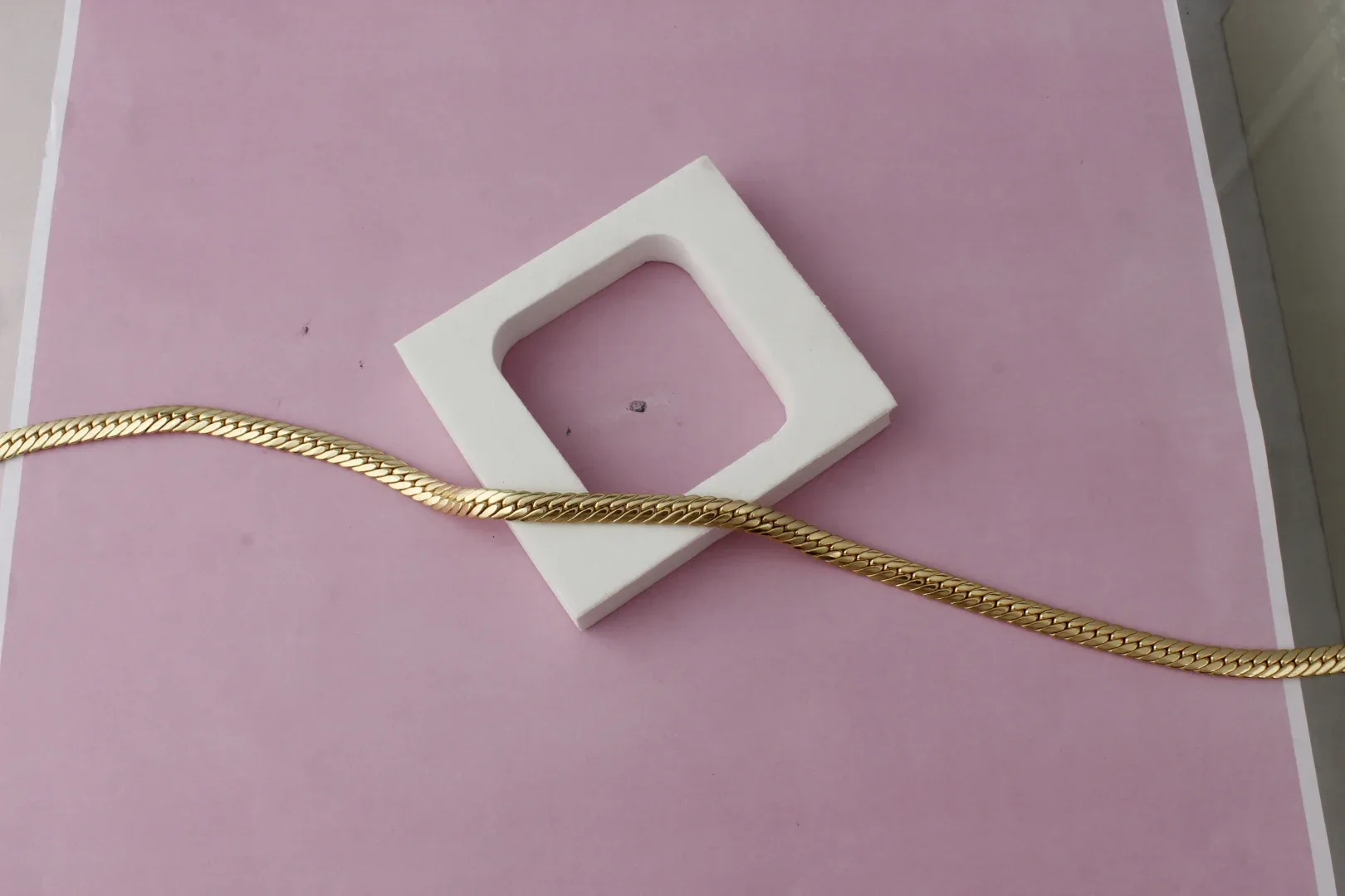 The Herringbone Chain is distinguished by its unique pattern of interlocking, flat links that lie smoothly against the skin. Each link is meticulously crafted to create a continuous, fluid motion, ensuring that the chain drapes gracefully around your neck. The herringbone pattern, with its distinctive V-shaped arrangement, catches and reflects light beautifully, adding a subtle shimmer to your look.