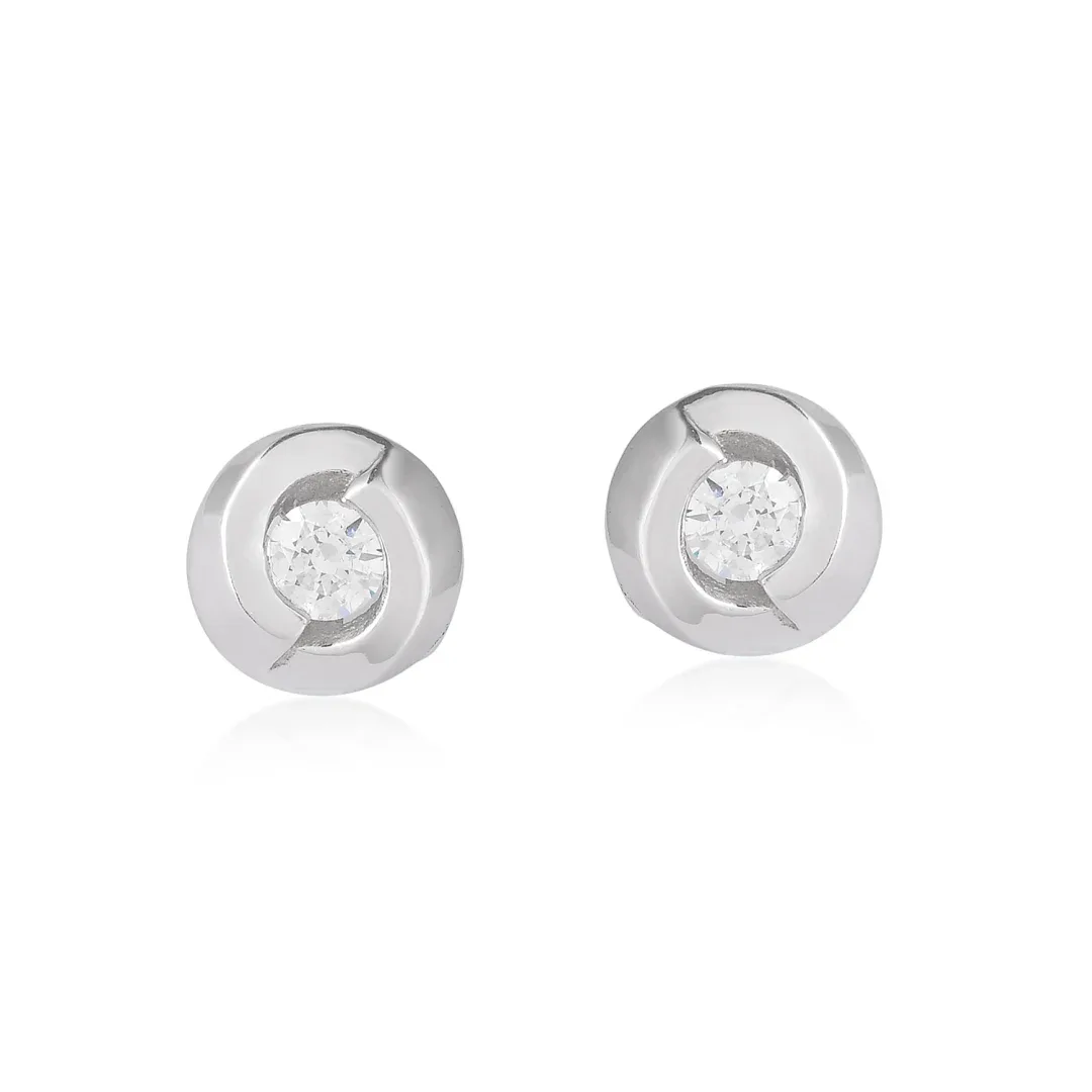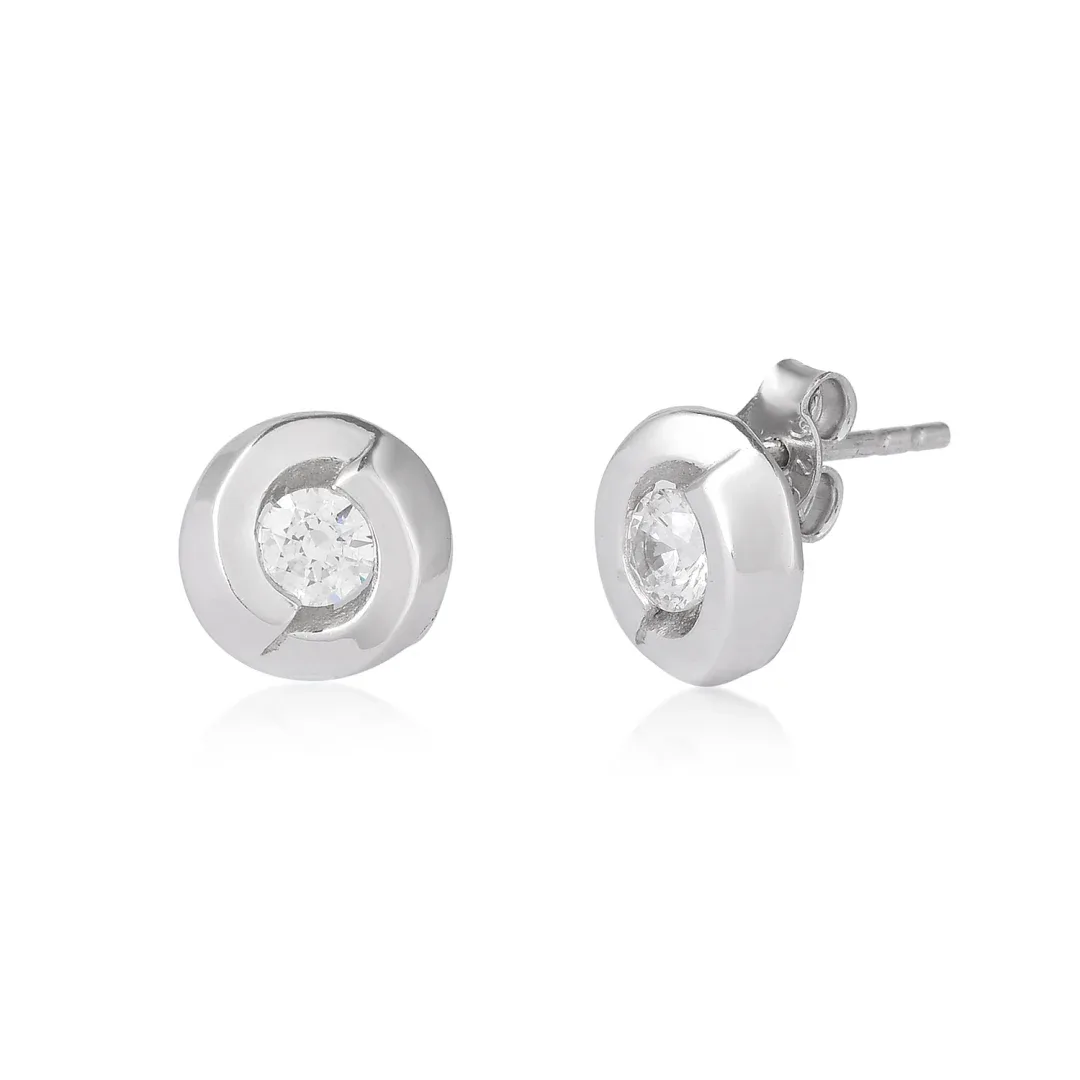 Sleek Silver Round Stud Earrings with Clear Crystal Accents