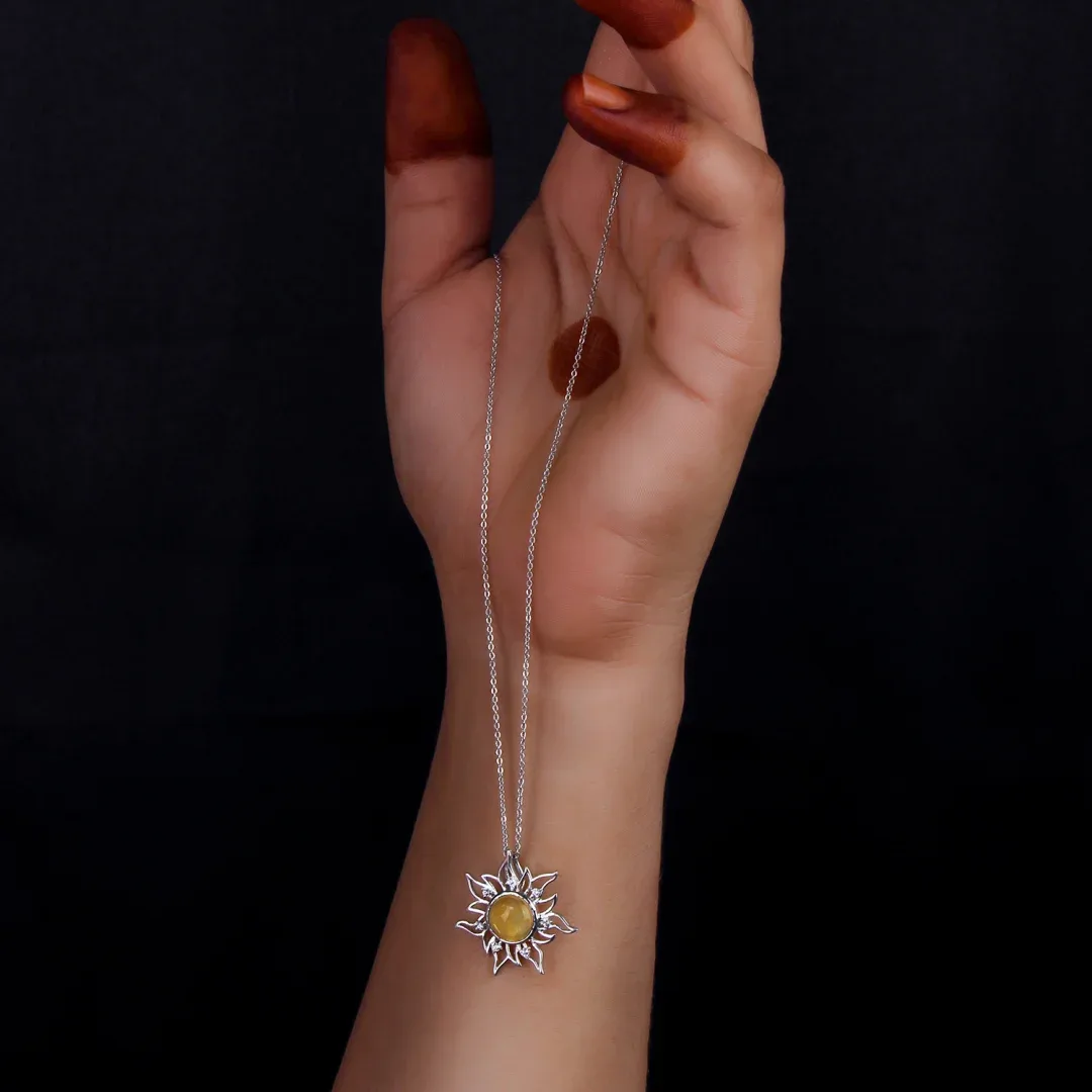 - Our Sun Radiant Citrine Pendant Necklace exudes timeless elegance, featuring a dazzling citrine center stone that captures the warmth of the sun in its golden hues.