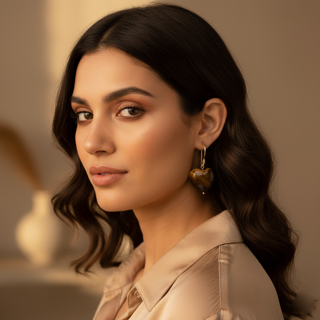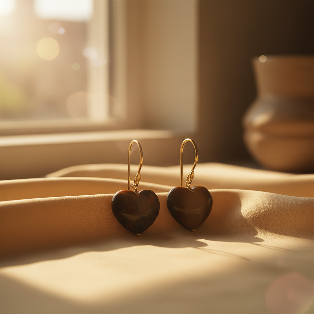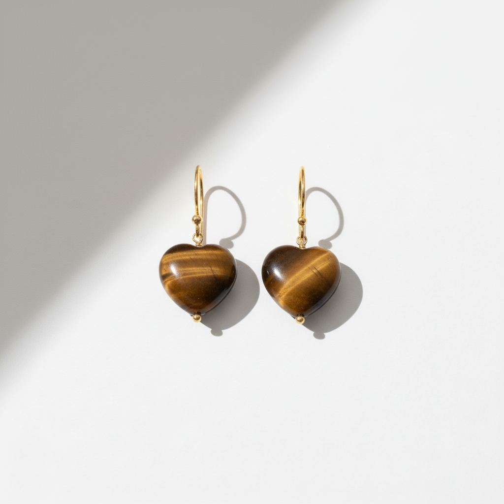 Elegant heart-shaped Tiger Eye drop earrings designed for a warm, classic, and stylish look suitable for daily wear as well as special occasions.