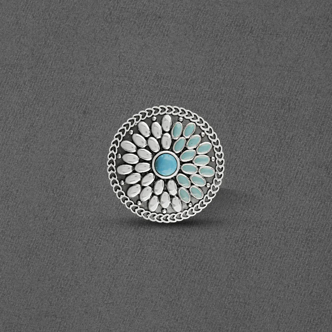 - Elevate your style with our exquisite silver ring, where a delicate turquoise stone meets the captivating allure of sky blue enamel.