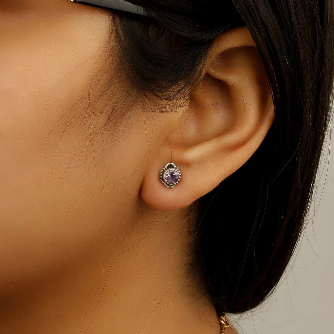 - “Experience the epitome of effortless style with our versatile round precious stones stud earrings, crafted in sterling silver to complement any outfit.”