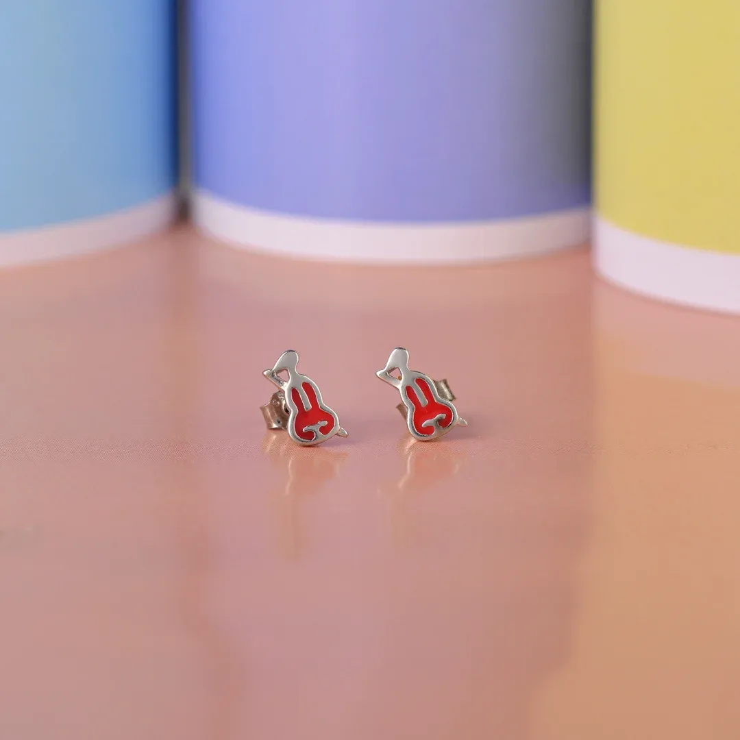 Crafted from high-quality sterling silver, these studs offer a sleek and polished appearance that enhances their timeless appeal. The silver setting provides a refined backdrop for the striking red enamel, which adds a bold and captivating burst of color. Each Violin earring is meticulously finished to ensure that the enamel is flawlessly applied, resulting in a smooth and glossy surface that resists chipping and fading over time. The deep, rich red of the enamel catches the light beautifully, creating a vivid, eye-catching effect that draws attention.